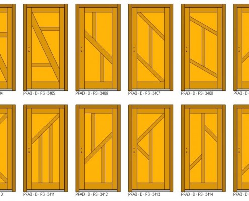 - Alle Felder innen gefälzt mit Leisten, außen mit Überschlag, Türblatt flächenbündig.